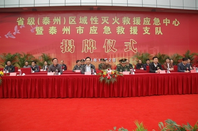 11月2日下午,省級(jí)(泰州)區(qū)域性滅火救援應(yīng)急中心暨泰州市應(yīng)急救援支隊(duì)在泰州市農(nóng)業(yè)開發(fā)區(qū)舉行揭牌儀式。省消防總隊(duì)政委陳益新,泰州市委副書記、代市長(zhǎng)徐郭平共同揭牌,泰州副市長(zhǎng)丁士宏、戴勝利出席。
