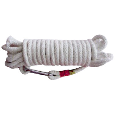 救生繩主要用作個人攜帶的一種救人或自救工具,也可以用于運(yùn)送消防施救器材,還可以在火情偵察時作標(biāo)繩用。在有些大型廠礦因火災(zāi)造成大面積煙霧時,還可以用于被困人員順繩逃生。目前使用的救生繩主要是精制麻繩,繩的直為6毫米~14毫米,長度為15米~30米,消防員用耐火救生繩通常用2.6mm航空鋼絲包芯。通常將直徑小的救生繩稱為拋繩、引繩或標(biāo)繩,將直徑大的救生繩稱為安全繩。