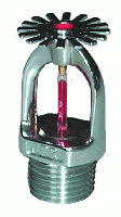 快速響應下垂型噴頭是由噴頭框架、溫感元件、密封件、濺水盤等組成,其中噴頭框架是采用銅合金材質的精密鍛壓、外表層進行鍍鉻拋光的制造工藝,使其具有框架強度高、耐腐蝕性強、外觀精美的特點。溫感元件(玻璃球)具有動作可靠,反應速度快。密封件具有抗老化、耐腐蝕、密封性好的性能特點。快速響應下垂型噴頭向下噴灑的水量為80%~100%。玻璃球的直徑為3mm[RTI≤50(m·s)0.5]。依據玻璃球動作的溫度不同而分為多種溫級噴