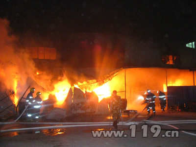 12月9日凌晨0點04分,杭州蕭山消防中隊接到區(qū)指揮中心出警單稱:新塘婁下陳凱麗紡織廠車間廠房發(fā)生火災,且火勢較大。以加強第一出動的原則,蕭山消防中隊出動4輛消防車和21名官兵趕赴現(xiàn)場,同時調(diào)派市北中隊及周邊民辦專職消防隊趕赴現(xiàn)場增援。