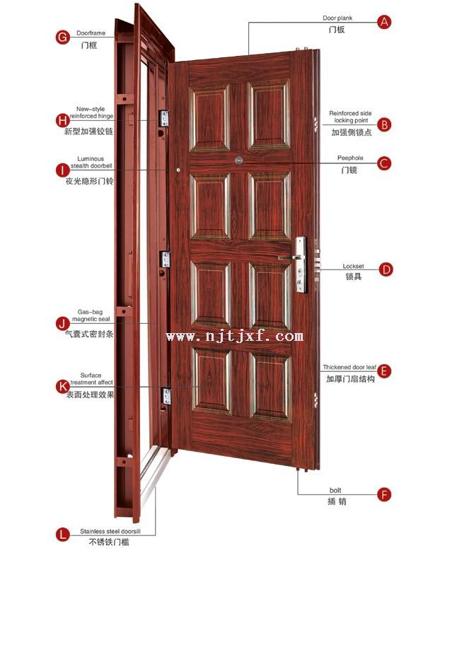 防火進(jìn)戶門具有普通鋼質(zhì)防火門良好的耐火性能,同時(shí)考慮到居家使用的需求,在門扇中增加了可視貓眼、門鈴及壓花轉(zhuǎn)印工藝,使防火門更加人性化。在達(dá)到防火要求的同時(shí),配備防盜天地鎖及裝修AB鑰匙,符合了家用防盜要求。