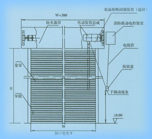 同防火墻的作用一樣起到水平防火分隔,它由簾板、座板、導(dǎo)軌、支座、卷軸、箱體、控制箱、卷門機(jī)、限位器,門楣、手動(dòng)速放開關(guān)裝置、按鈕開關(guān)和保險(xiǎn)裝置等13個(gè)部分組成,一般安裝在不便采用防火墻分隔的部位。如:敞開電梯廳、自動(dòng)扶梯、百貨大樓的寬大營業(yè)廳、展覽樓的展覽廳和建筑物中洞口較大不能用防火門窗的部位。
