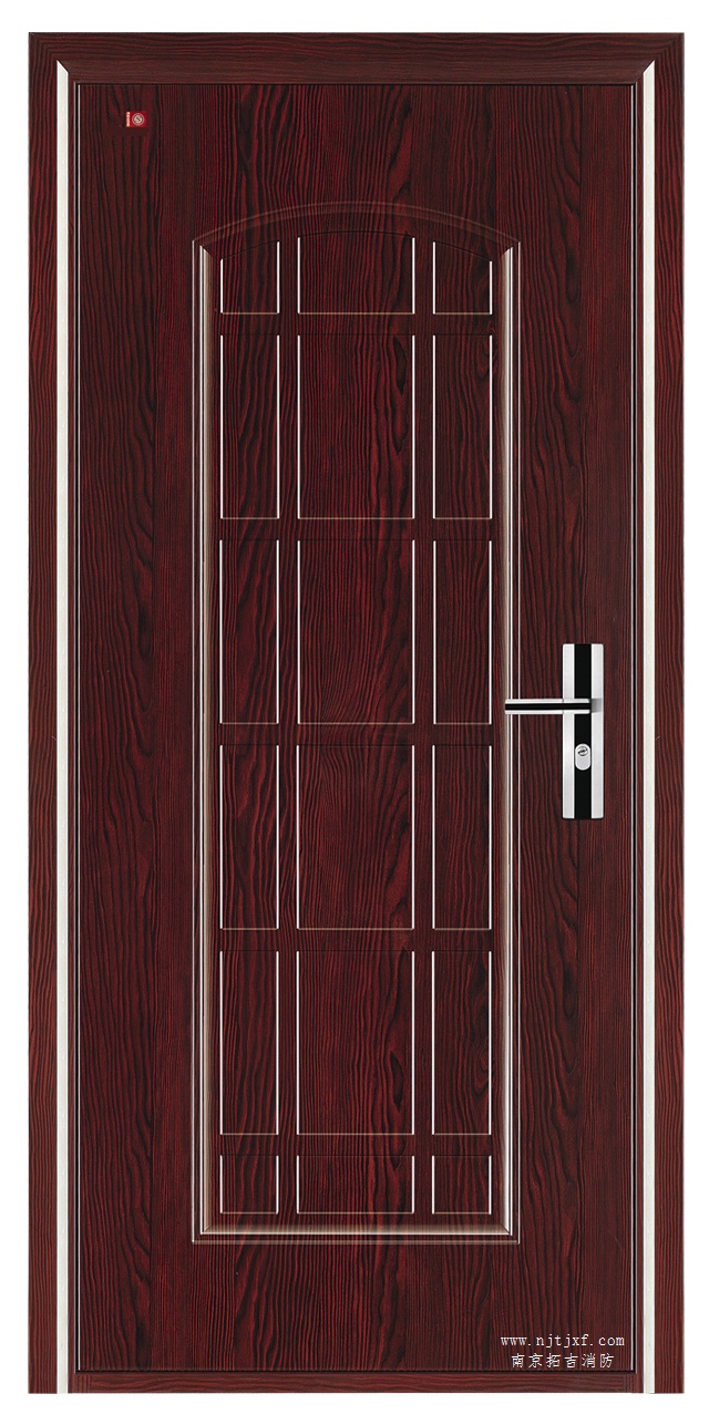 2、產(chǎn)品外觀門面有多種不同風格的定型圖案。獨具個性的設計、流暢的線條,突出了產(chǎn)品的整體美觀感,顯示出端莊、時尚的特點。門扇內(nèi)部填充新型環(huán)保阻燃隔熱材料,在門面凹凸部位經(jīng)專業(yè)設備定型、環(huán)保膠粘劑壓制成型。門扇與門框結(jié)合處均做防火密封處理,使防火性能大大加強。