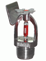 水平邊墻型噴頭是由噴頭框架、溫感元件、密封件、濺水盤等組成,其中噴頭框架是采用銅合金材質(zhì)的精密鍛壓、外表層進行鍍鉻拋光的制造工藝,使其具有框架強度高、耐腐蝕性強、外觀精美的特點。溫感元件(玻璃球)具有動作可靠,反應(yīng)速度快。密封件具有抗老化、耐腐蝕、密封性好的性能特點。水平邊墻型噴頭玻璃球的直徑為5mm[RTI 大于50(m·s)0.5且小于等于80(m·s)0.5]。依據(jù)玻璃球動作的溫度不同而分為多種溫級噴頭。