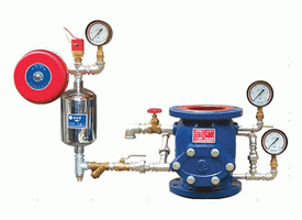 濕式報警閥主要結(jié)構(gòu)原理為隔板座圈型濕式報警閥。閥體材料為灰口鑄鐵,閥瓣、座圈采用銅合金材料,銷軸及內(nèi)部螺釘?shù)炔捎貌讳P鋼材料,密封墊片采用丁腈橡膠。閥瓣連接部位采用了圓弧連接,使得閥瓣啟閉靈活,定位性好。依據(jù)功能要求設(shè)有進水口、報警口、測試口、出水口。我公司生產(chǎn)的ZSFZ濕式報警閥DN150為內(nèi)平衡式,DN100、DN200為外平衡式,其結(jié)構(gòu)如圖1,圖2,其高度尺寸列于表一。