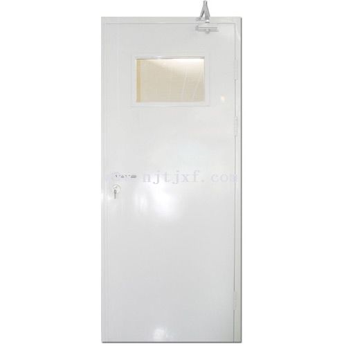 整套鋼質(zhì)防火門分別由門框、門扇、防火玻璃、防火鎖、防火閉門器、防火鉸鏈、防火插銷、防火密封條及順序器(選用)組成。門框、門扇鑲嵌安裝A類復合防火玻璃制作防火觀窗、上亮。